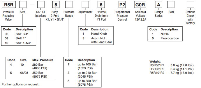 比例減壓閥R5R*P2都是基于機械調整序列R,機械先導閥和主*之間的附加比例單元允許連續壓力調節。*佳性能可與數字放大器模塊PCD00A-400來實現。該比例閥具有按比例電磁鐵連續調整的功能,可隨著機械的*大壓力調整,2端口體與SAE61凸緣,3種尺寸(SAE¾“,1”,11/4“),3*壓力。