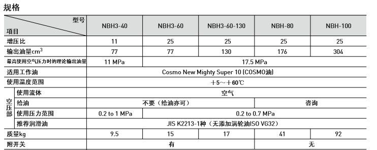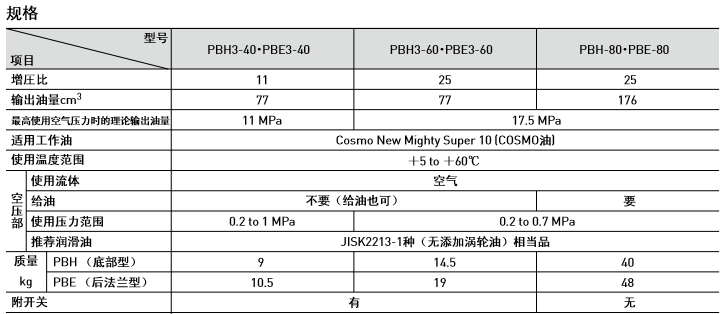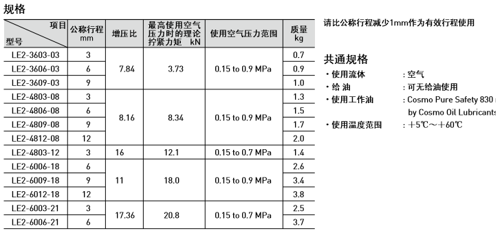 擰緊部件的工作速度隨使用增壓器而變化。超過左表速度使用會造成密封件早期磨損,脫落,由于混入空氣使輸出力降低,可能會造成空氣回路中混入油。尤其是如果增壓器的氣壓活塞返回時間比擰緊部件回復時間早,會是回路中油壓為負壓,造成混入空氣。