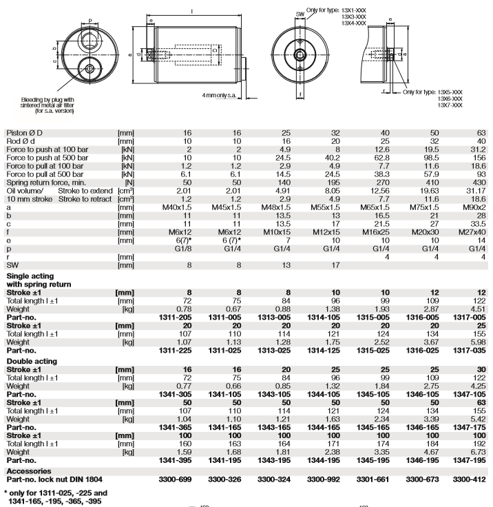 ROEMHELD螺紋通用汽缸的特點: